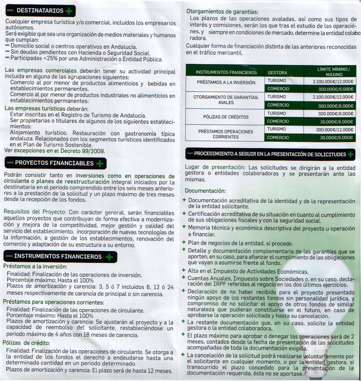 La consejería de Turismo, Comercio y Deporte en colaboración con Cajasol-Banca Cívica ha sacado unos fondos de apoyo a las empresas turísticas y comerciales. Estos fondos van encaminado a 4 líneas préstamos a la inversión, otorgamiento de garantías avales, pólizas de créditos y operaciones corrientes. A continuación les dejamos el díptico informativo.