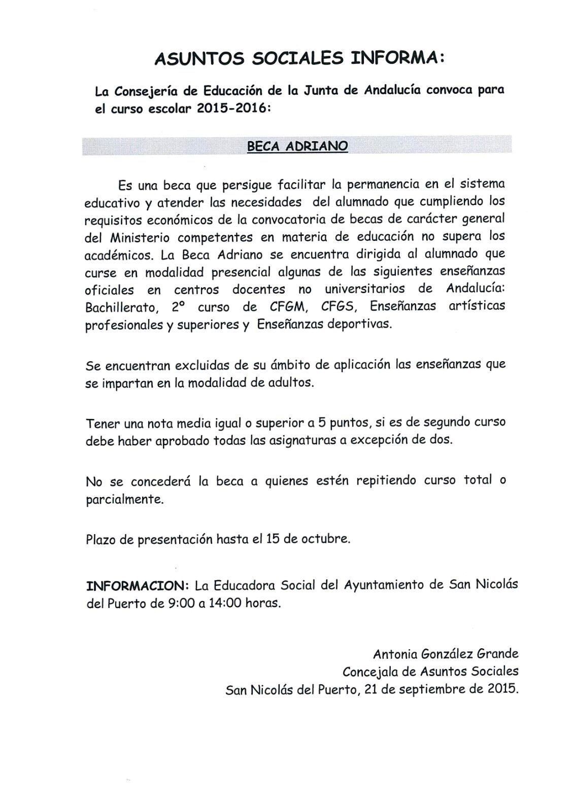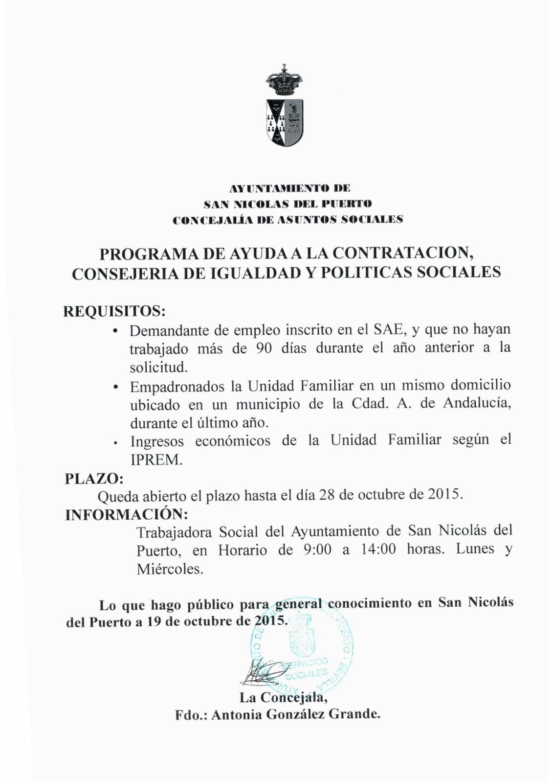 15/10/2015 #Asuntos Sociales
